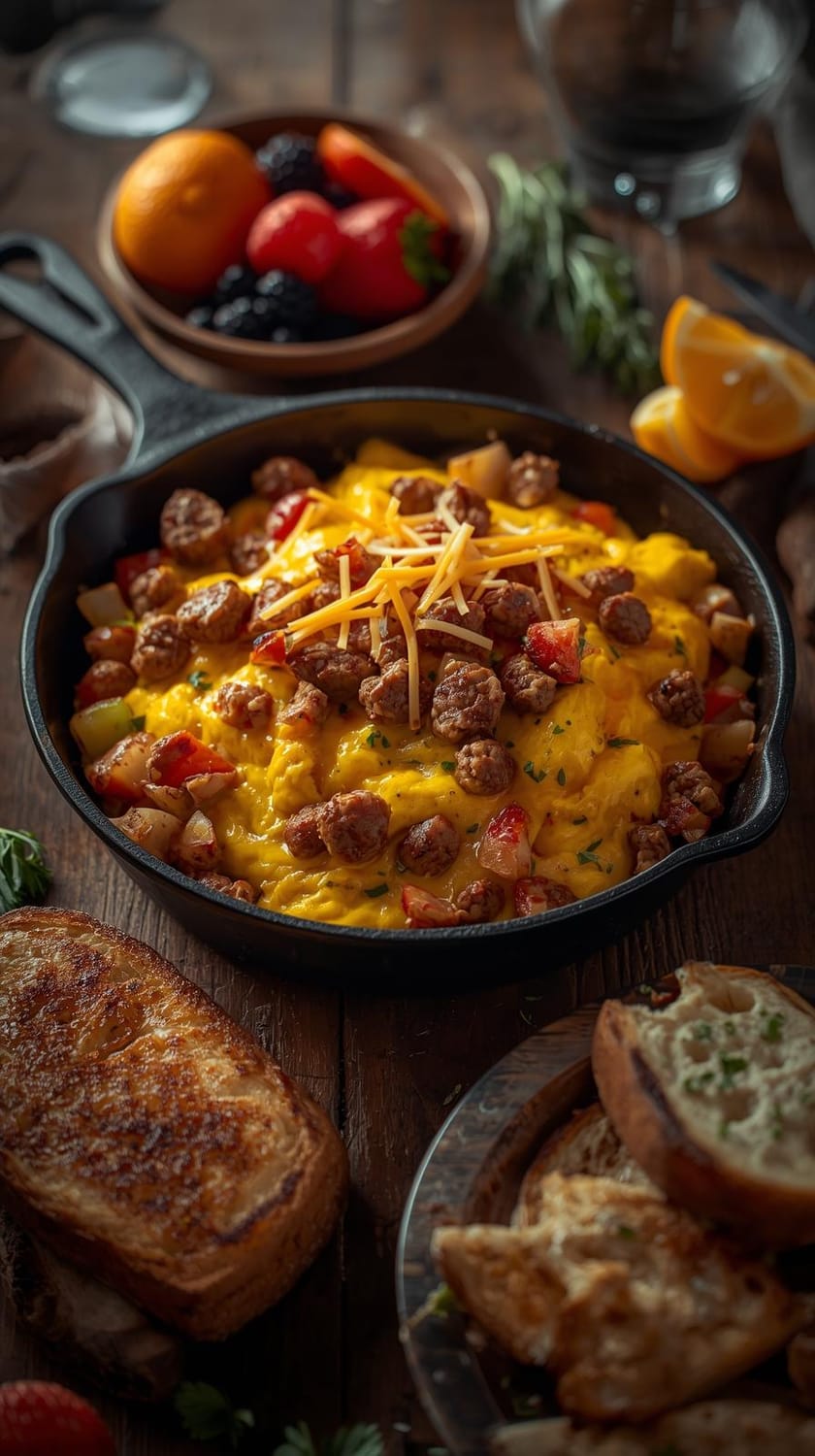 Breakfast for dinner is one of the easiest ways to feed everyone fast. A hearty scramble with eggs, cheese, potatoes, and sausage can come together in no time and still feel like a complete meal. You can use frozen hash browns, leftover roasted potatoes, or toast on the side to make it even easier. Add peppers, onions, or spinach if you want a little more color and flavor. It is budget-friendly, filling, and surprisingly satisfying at the end of a long day.